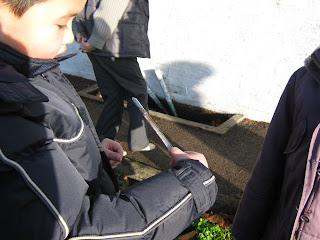 The children are making the front page of a rainforest newspaper. They decided on the name of the paper and the typeface to be used for it. Each group of children played the part of a different type of rainforest worker. They the interviewed each other as if they were a reporter, asking how the logging would affect the forest. This will be written up as a front page story with photos of themselves as the native workers. They are using